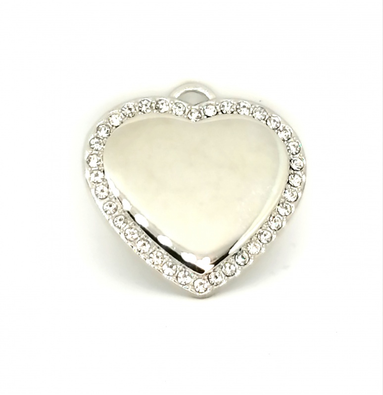 Kivin koristeltu hopeasydän. Eteen kaiverretaan nimi, taakse puh.nro.