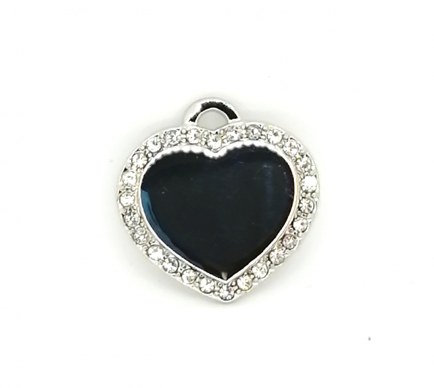 Kivin koristeltu hopeasydän. Eteen kaiverretaan nimi, taakse puh.nro.