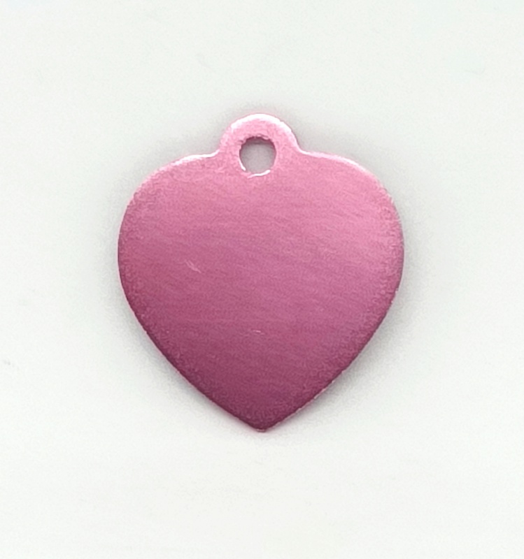 Vaaleanpunainen sydän. Etupuolelle kaiverretaan nimi, taakse puh.nro.
