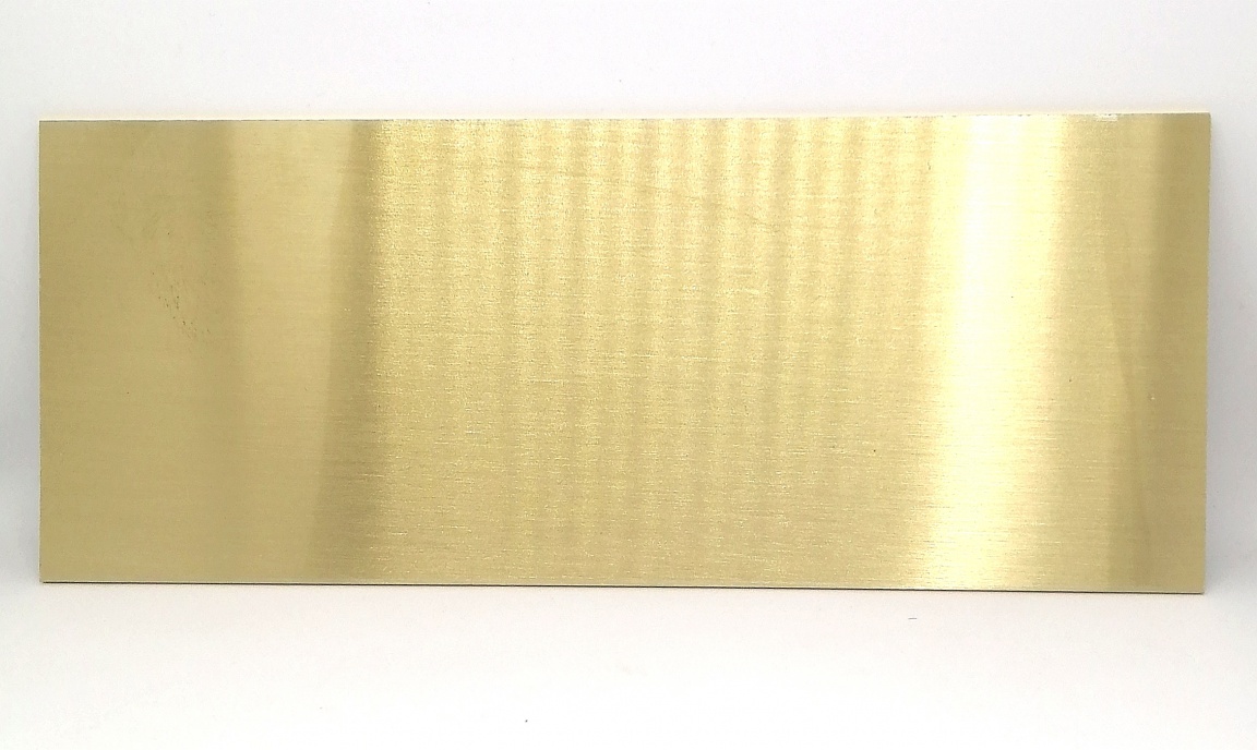 Messinkilaatta harjattu. Koko 220x90mm. Valittavana kaksi eri paksuutta, 1mm ja 2mm (+8€)