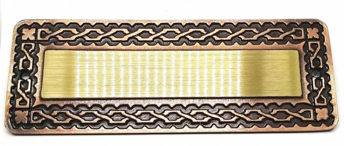 Harjattu kulta, kuparinvärinen reunus, teksti tummaksi hapotettu.