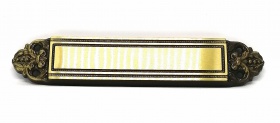 Väri: harjattu kulta, teksti tummaksi hapotettu.