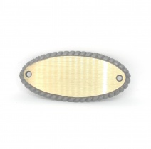 Harjattu kulta ovikilpi, musta reunus. Koko 100x47mm.