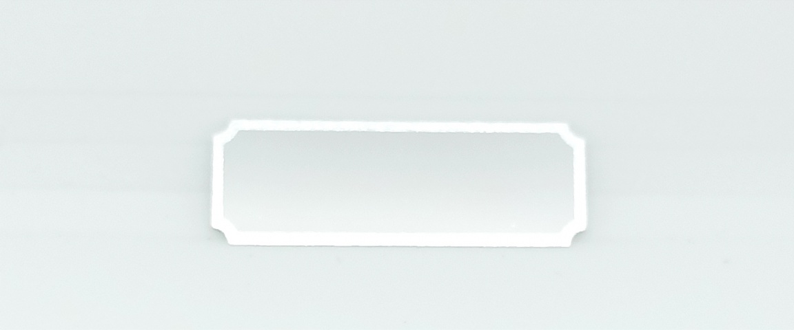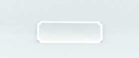 Koko 50x17mm. Suositellaan max. 3 riviä tekstiä. Takana teippi kiinnitystä varten.